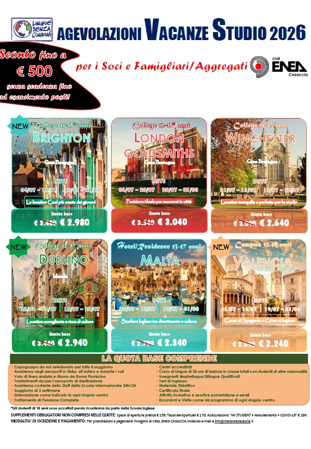 VACANZE STUDIO ALL'ESTERO 2026 PER RAGAZZI